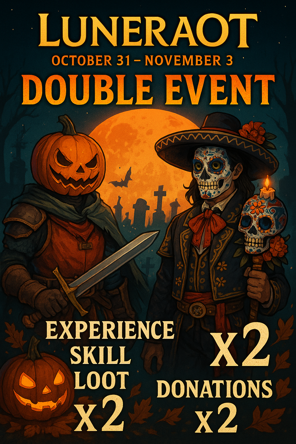 From October 31st to November 3rd, we will have a double x2 event, exp, skill, loot and donations.
